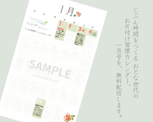 今回の「お片付け習慣カレンダー for おとな世代」1月号です。